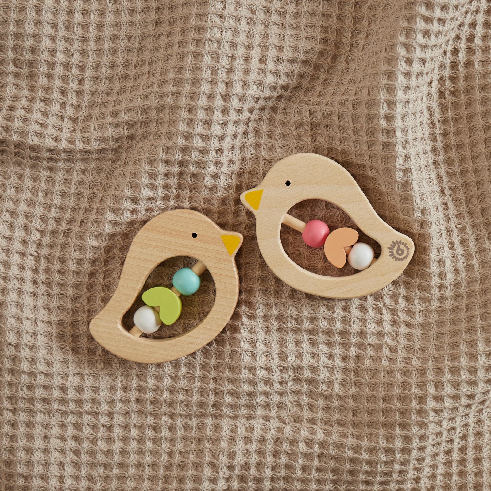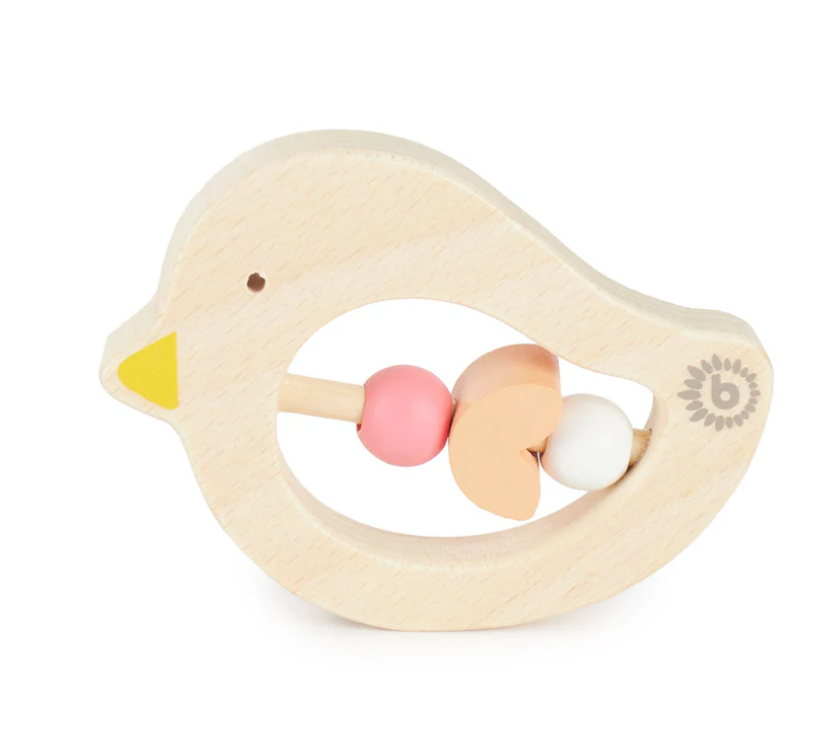 Jucărie de dentiție din lemn pentru bebeluși Bird Bieco