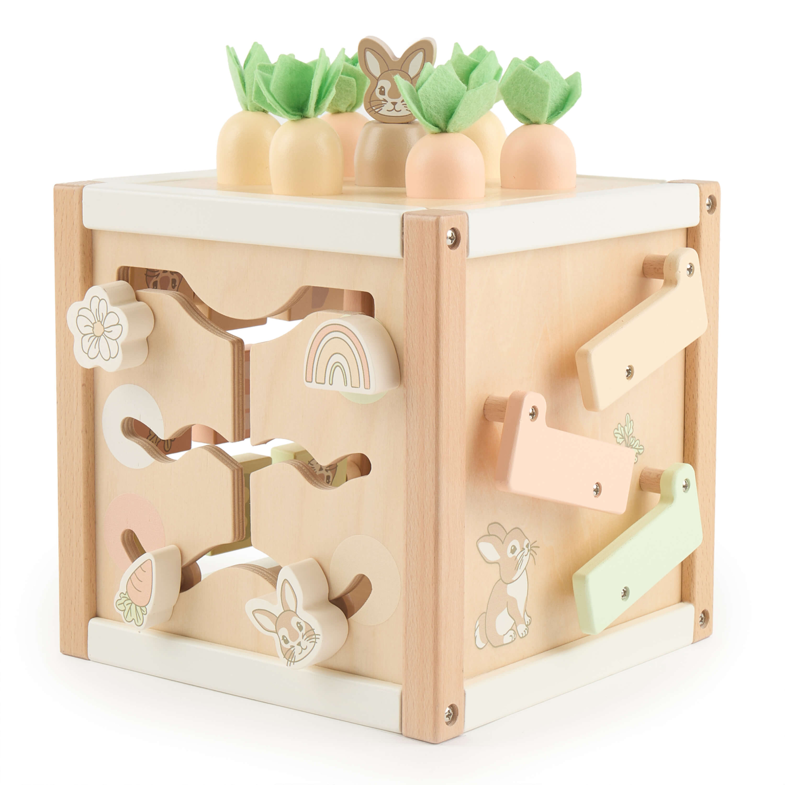 Descoperă cubul de activități Montessori Bunny Fine 5 în 1 de la Bieco, o jucărie educativă din lemn de înaltă calitate, creată pentru a stimula dezvoltarea armonioasă a copilului tău. Perfect ca si cub activități bebeluși sau centru de activități Montessori, acest joc interactiv transformă fiecare clipă de joacă într-o lecție plină de descoperiri.