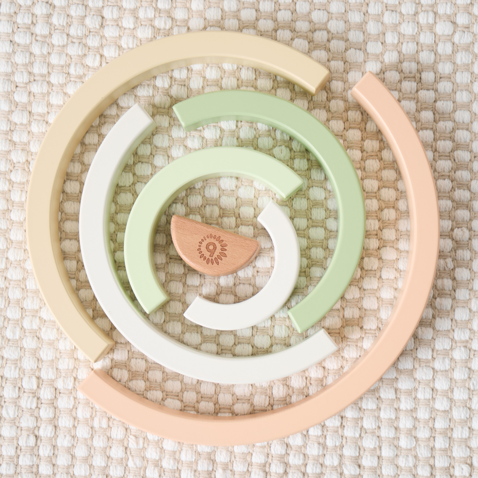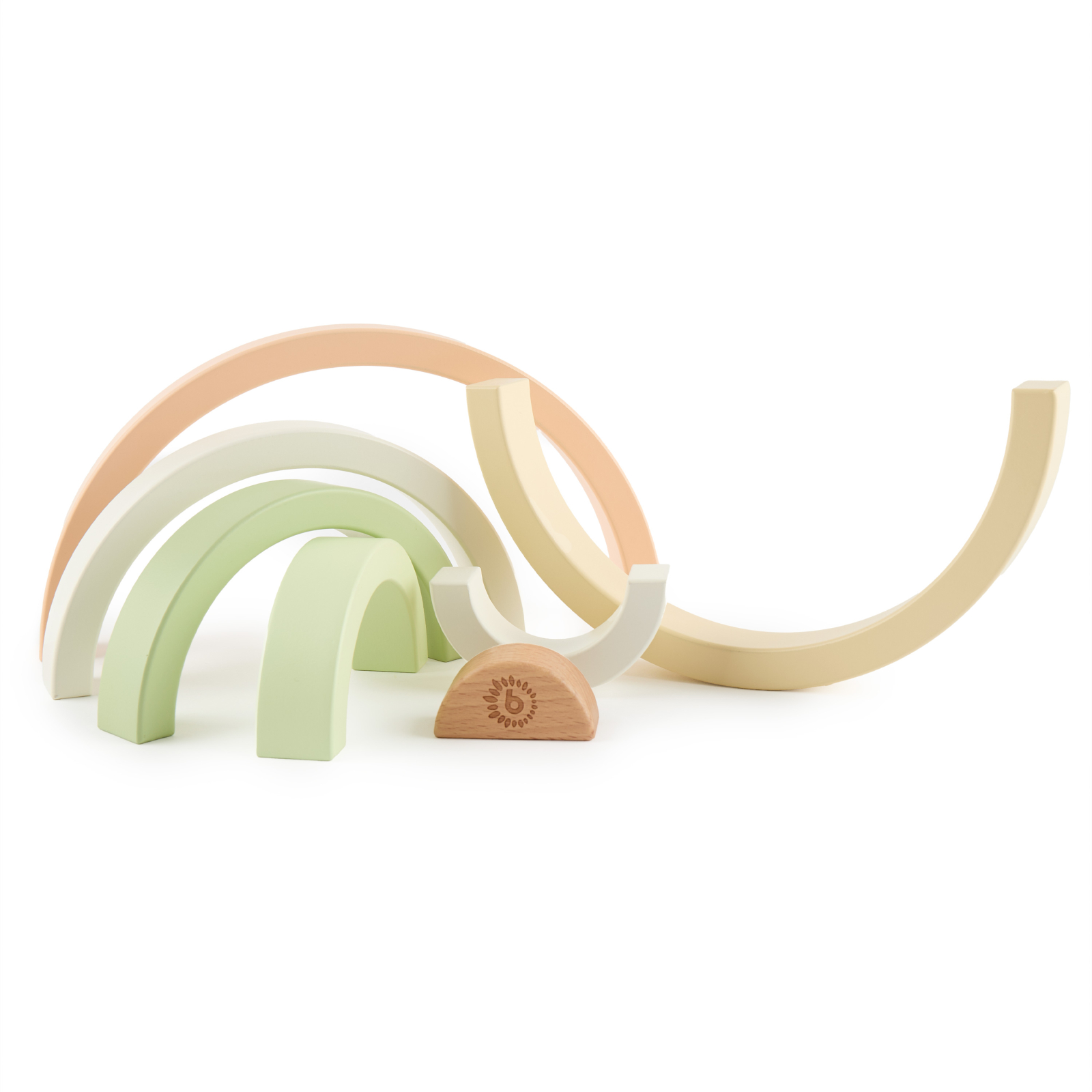 Realizat din lemn FSC®, de înaltă calitate, curcubeul este plăcut la atingere și sigur pentru cei mici.