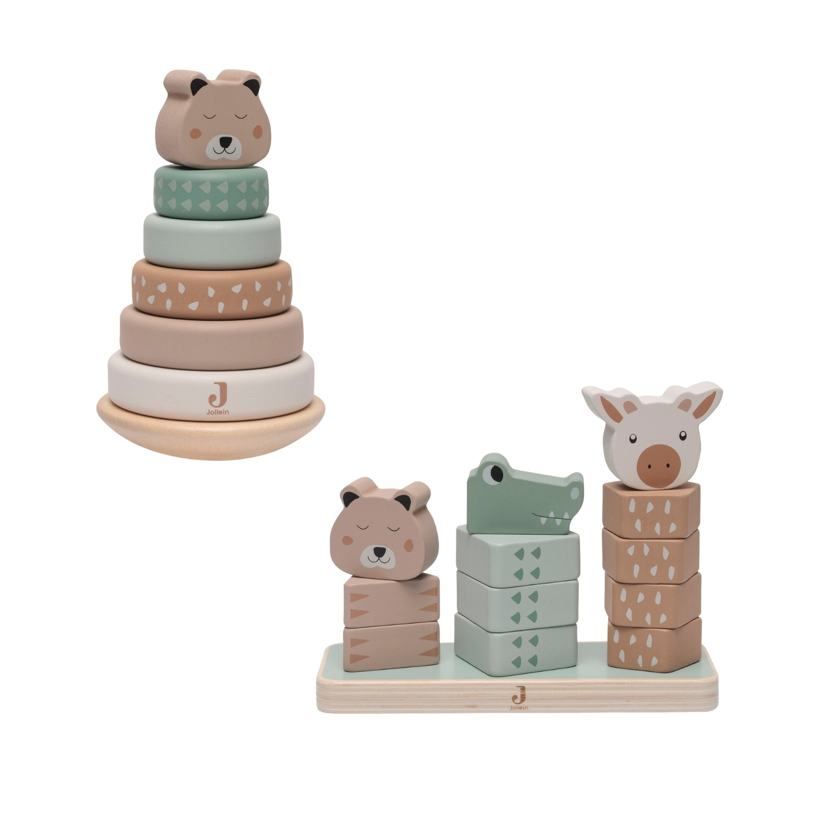 Jollein Set jucării stivuire din lemn pentru bebeluși Jungle Jambo Jollein