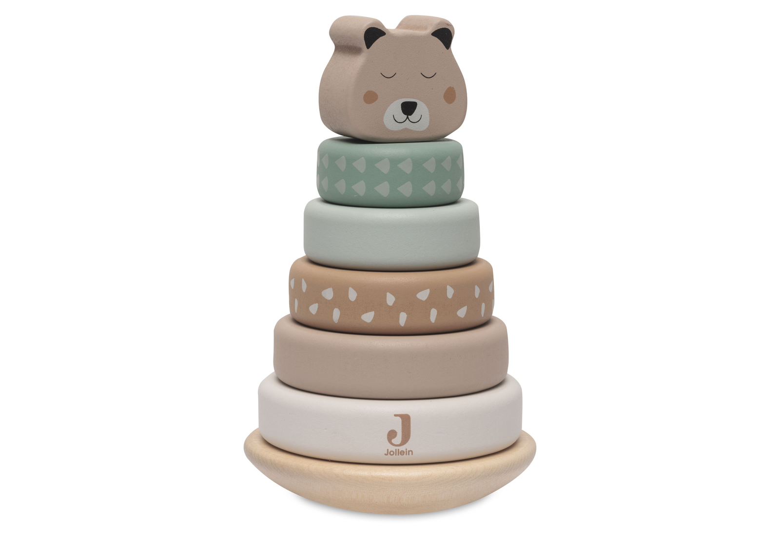 Setul de jucării de stivuire Jungle Jambo de la Jollein include două tipuri de jucării din lemn FSC 100%: blocuri de stivuire cu animale din junglă și inele de stivuire în formă de ghepard. Acestea transformă timpul de joacă într-o experiență educativă, stimulând coordonarea ochi-mână, creativitatea și recunoașterea culorilor și formelor.